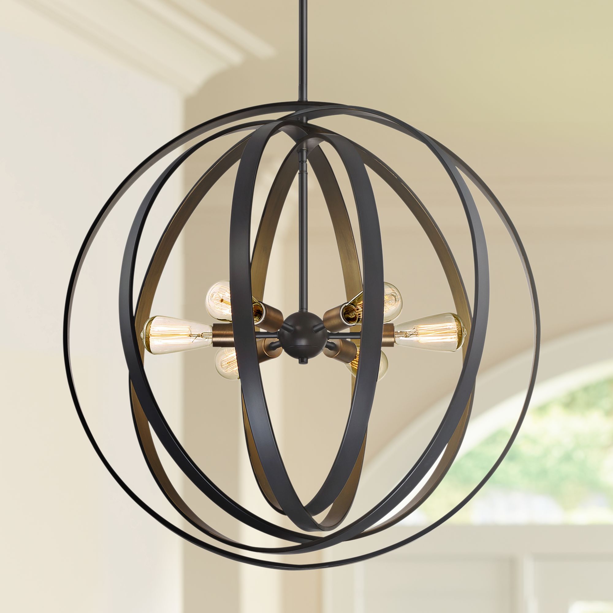 Crafted from metal, its understated frame features several down rods for a rustic touch. Unlike traditional lighting fixtures which often display heavy details like floral motifs and decorative embellishments, transitional dining room lighting typically have simple linear patterns or geometric motifs to produce a more casual and laid back appeal. Lowest price in 30 days. Plus, installing a chandelier is an easy, affordable way to bring a feeling of class and sophistication to your dining room. Secure the fixture above your table as is or dress it up with a set of handsome fabric shades.
